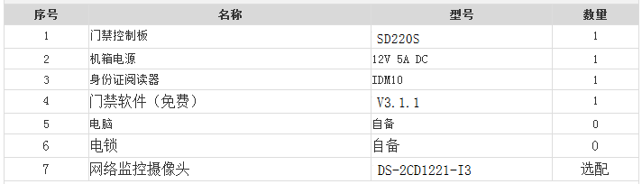 身份證門禁配置清單