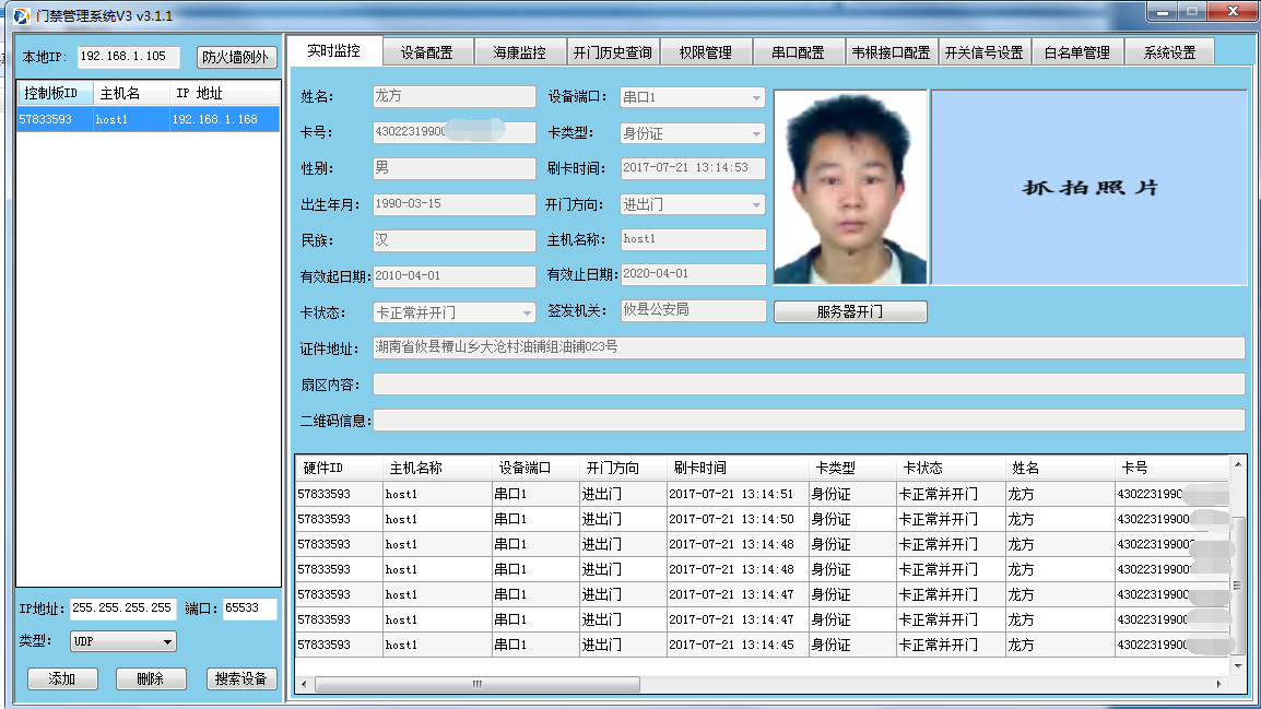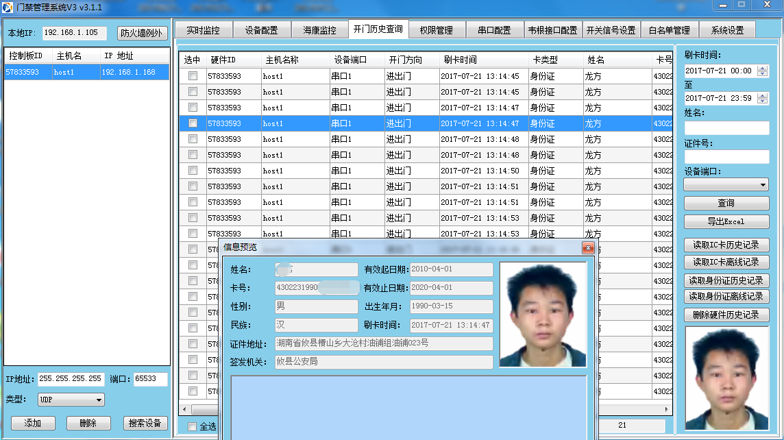 ??身份證門禁控制器,支持身份證閱讀器、韋根讀頭26-34、指紋讀頭、二維碼讀頭、作為門禁讀頭使用,可連接專用觸摸顯示屏,應(yīng)用于各種門禁、閘機(jī)、自動(dòng)門、停車場(chǎng)系統(tǒng),支持限次,限時(shí)間,限人數(shù),限性別,限年齡,支持刷身份證即開,自主鑒權(quán),電腦鑒權(quán)。